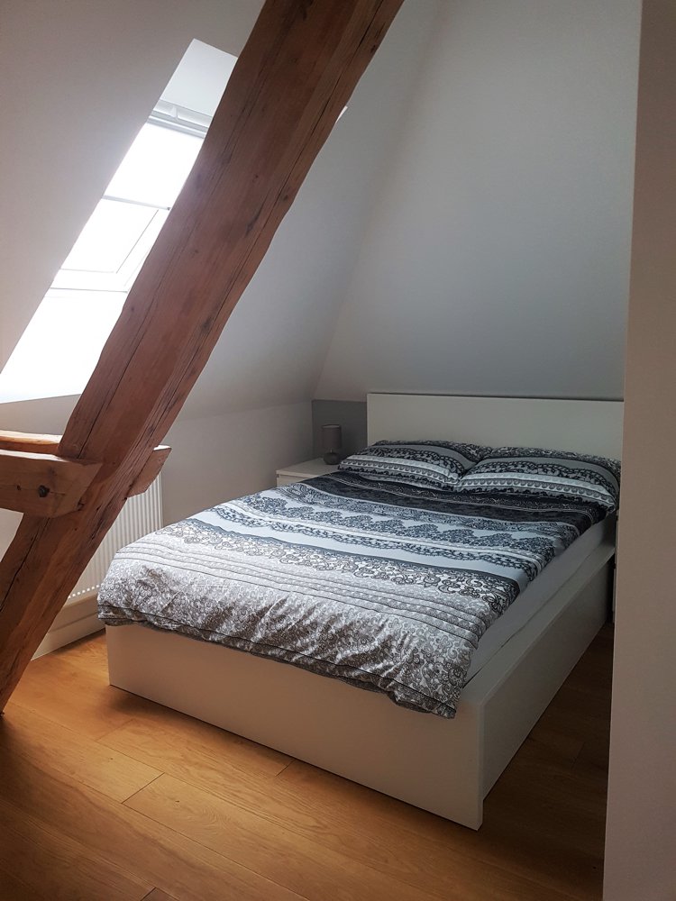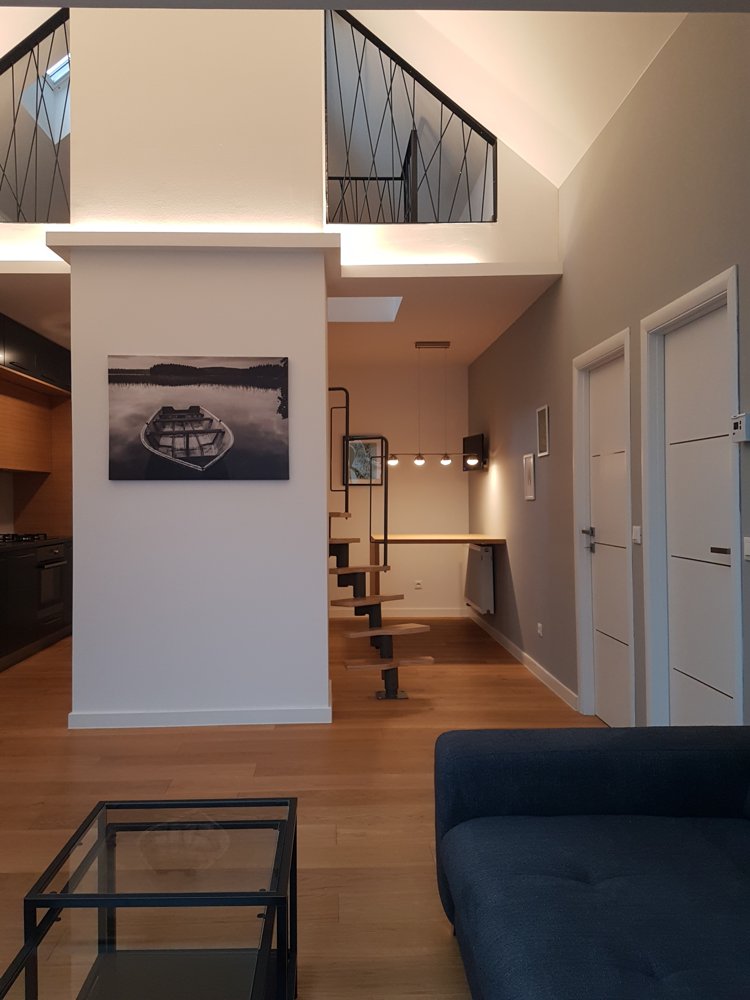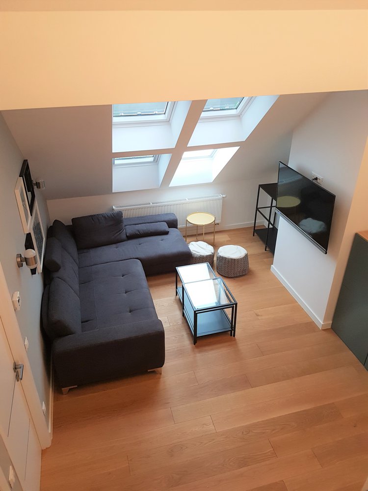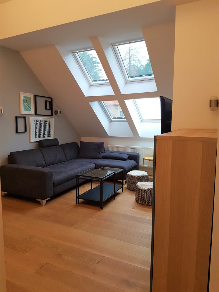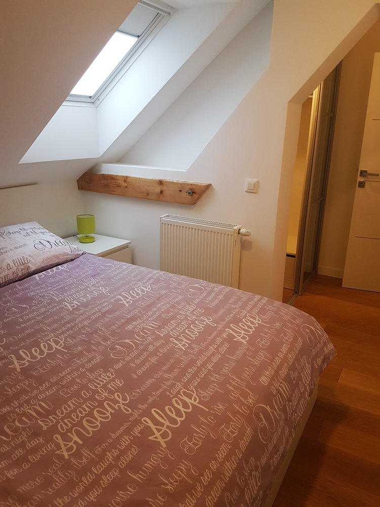 Prostrani stan površine 80 m2 nalazi se u potkrovlju stambene zgrade u Bosanskoj ulici u centru Zagreba. U potpunosti je novouređen i namješten. Sastoji se od tri spavaće sobe, kupaonice, WC-a, kuhinje s blagovaonicom i prostranog dnevnog boravaka.